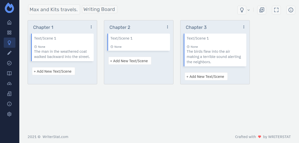 Customize everything, to your story and writing process.Easily write and keep track of story/writing notes.